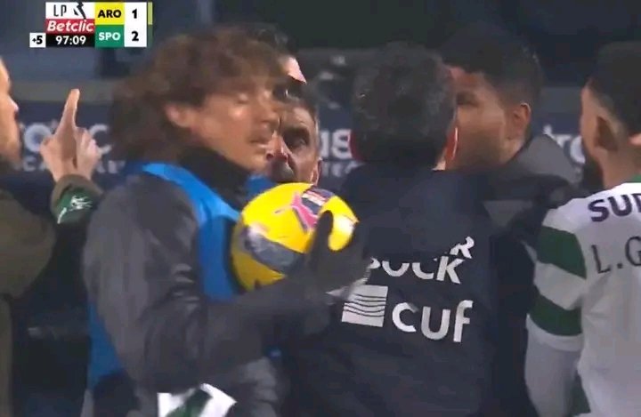 Já nos descontos, aos 90’+7, no Arouca-Sporting, Matheus Reis — que tinha sido substituído aos 80 minutos — regressou ao relvado durante os festejos do golo que fixou o 1-2 final e acabou expulso com vermelho direto.