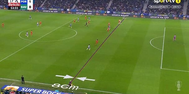 Minuto 47: Deniz Gul aumenta vantagem do FC Porto. Oskar Pietuszewski parte da esquerda para o meio e deixa a bola em Gabri Veiga, que serve o avançado turco na área para a finalização. Mas após revisão do VAR, o golo é anulado por fora de jogo de Pietuszewski, por oito centímetros.